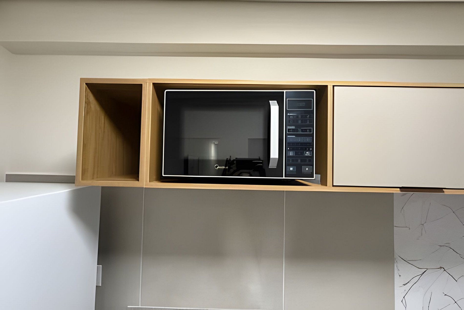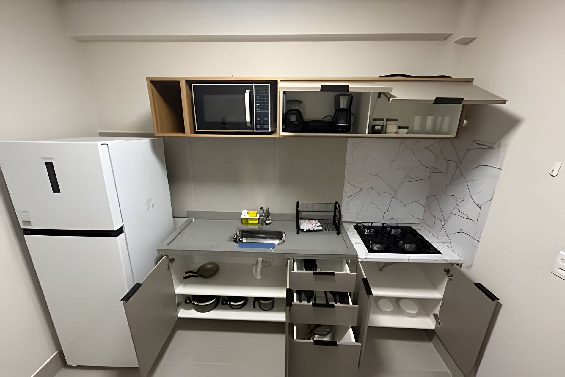 Mini geladeira/geladeira e micro-ondas para maior praticidade