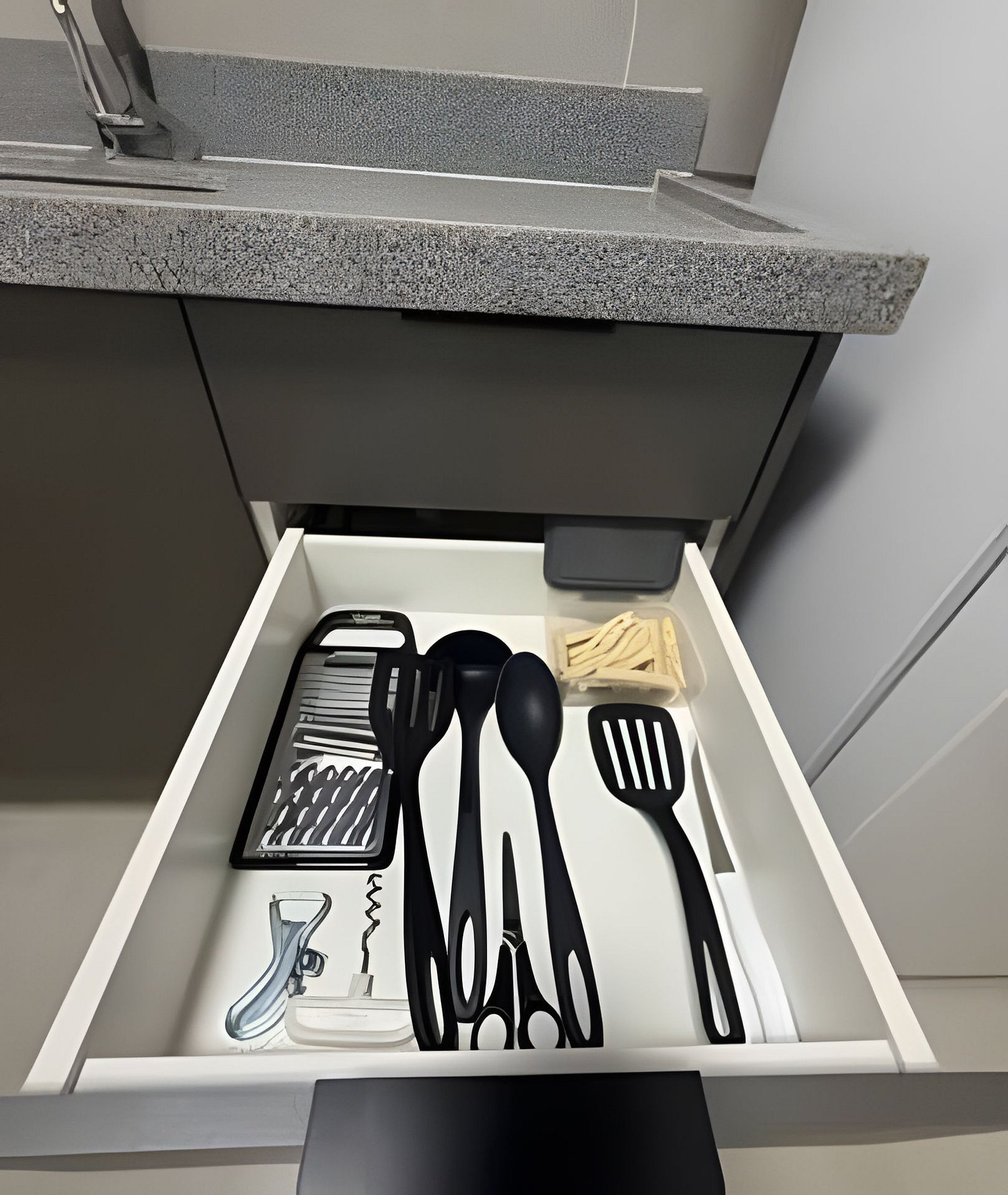 Cozinha completa equipada com utensílios essenciais