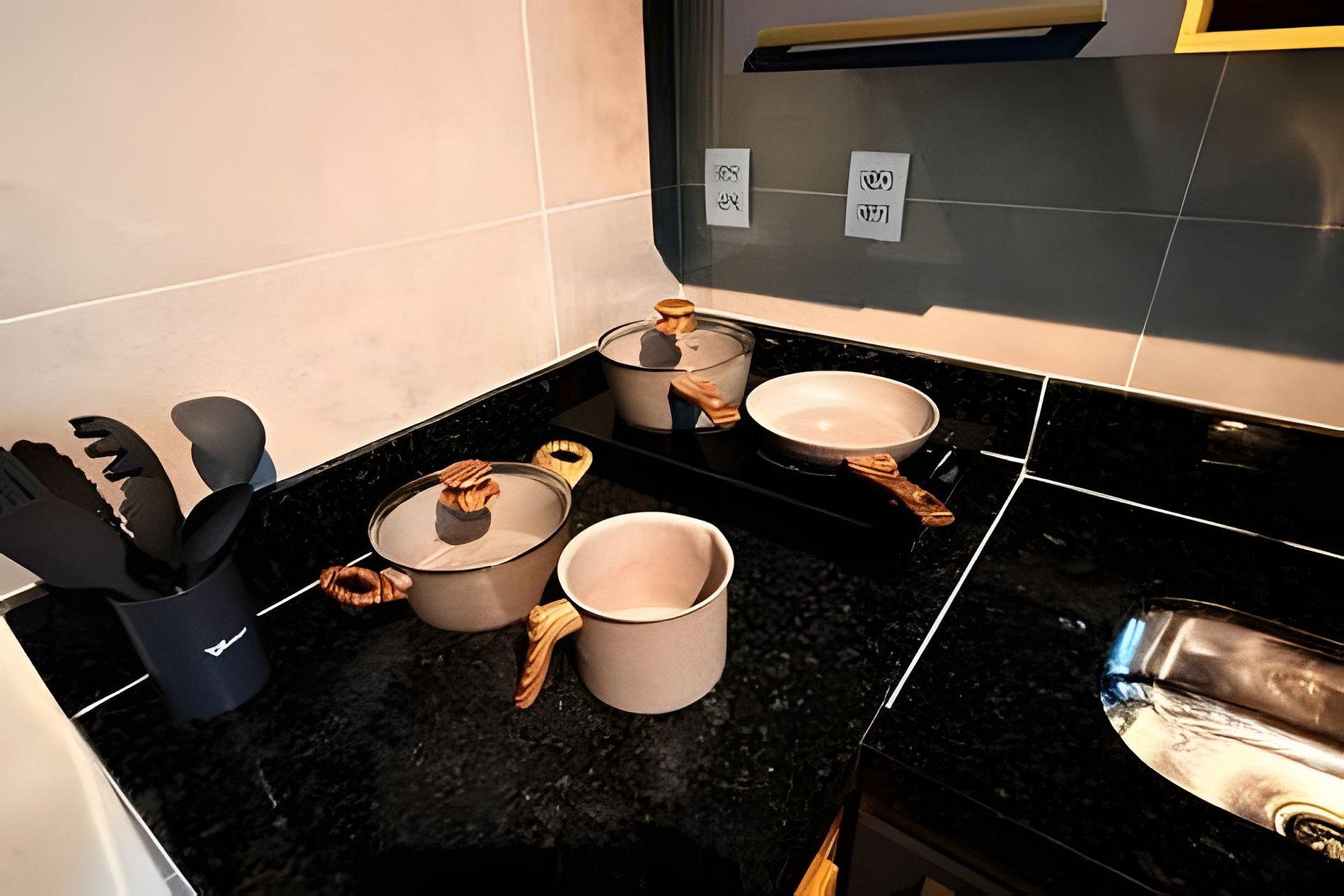 Ambiente moderno, organizado e pensado para oferecer autonomia e praticidade durante sua estadia.